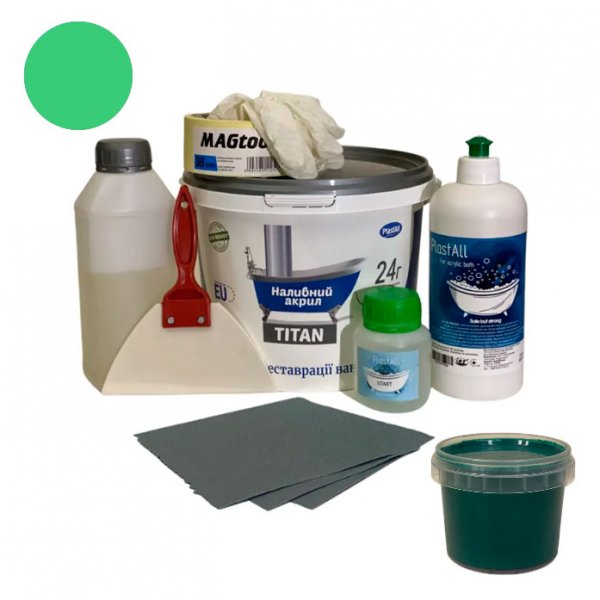 Акрил для ванн "Plastall-Титан" 1,2 м цветной Зеленый 2.4 кг с набором для реставрации ванн Оригинал Армянск